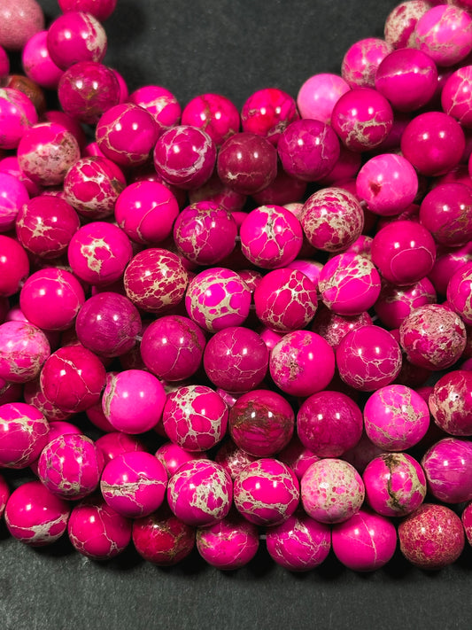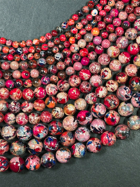 Natural Sea Sediment Jasper Gemstone Bead 4mm 6mm 8mm 10mm Round Beads, Beautiful Hot Pink Color Imperial Jasper Bead Full Strand 15.5"