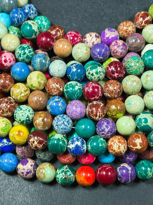 Natural Sea Sediment Jasper Gemstone Bead 4mm 6mm 8mm 10mm 12mm Round Beads, Beautiful Rainbow Multicolor Jasper Beads Full Strand 15.5"