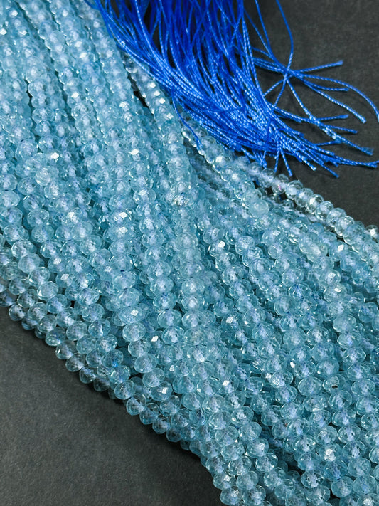 AAA Natural Blue Topaz Gemstone Faceted 2x3mm 4x6mm Rondelle Bead, Beautiful Natural Sea Blue Clear Color Topaz Bead Excellent Quality 15.5"