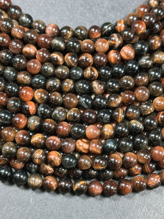 Natural Multicolor Tiger Eye Gemstone 6mm Round Beads, Gorgeous Multicolor Reddish Brown Navy Blue Color Tiger Eye Gemstone Beads 15.5"