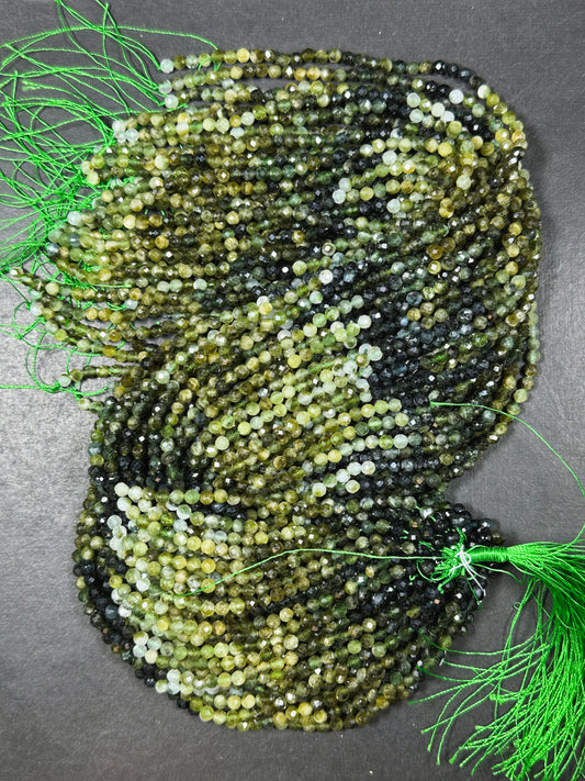 AAA Natural Green Tourmaline Gemstone Bead Faceted 4mm Round Beads, Beautiful Natural Multi Green Tourmaline Beads Excellent Quality 15.5"