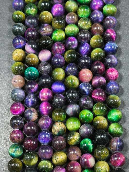 Multicolor Green Galaxy Tiger Eye Gemstone 6mm 8mm 10mm Round Beads, Gorgeous Multicolor Green Purple Teal Color Galaxy Tiger Eye Beads 15.5"