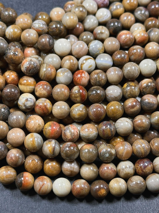 Natural Petrified Wood Jasper Gemstone 4mm 6mm 8mm Round Beads, Beautiful Natural Multicolor Brown Petrified Wood Jasper Stone Beads 15.5"