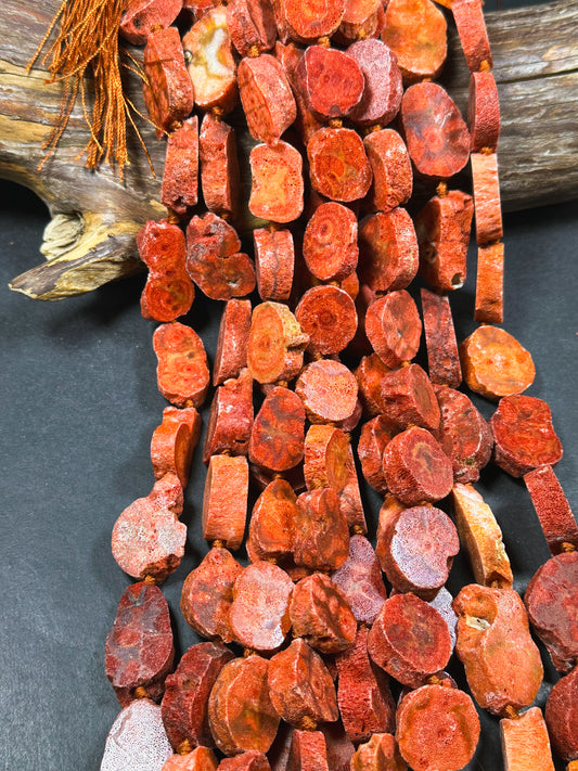 100% Natural Spanish Sponge Coral Gemstone Freeform Oval Shape Beads, Gorgeous Natural Orange Red Color Sponge Coral Gemstone Bead 15.5"