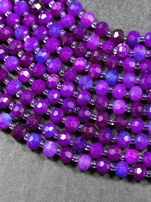 Natural Sugilite Gemstone Faceted 8x6mm Rondelle Shape Beads, Beautiful Natural Purple Heat Treated Color Sugilite Stone Beads 15.5" Strand