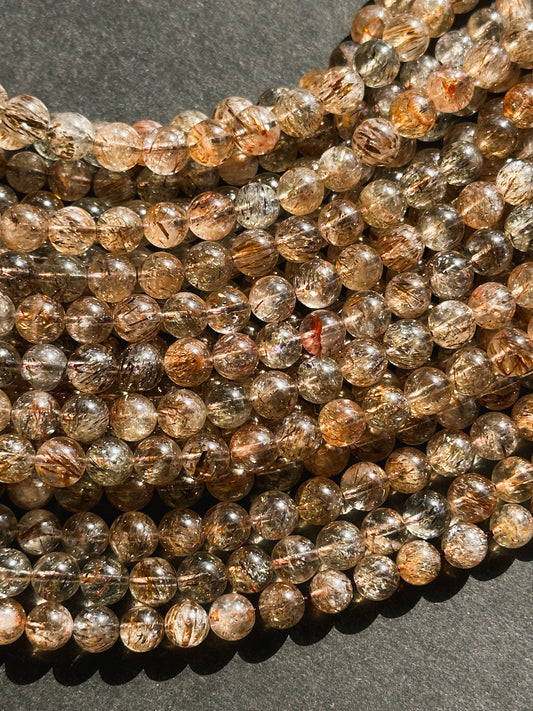 AAA Natural Rutilated Quartz Gemstone Bead 6mm Round Beads, Beautiful Natural Clear Brown Rutilated Quartz Stone Beads Full Strand 15.5"