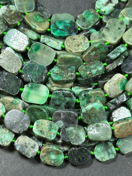 Natural Emerald Gemstone Bead Freeform Oval Shape Bead, Beautiful Natural Green Black Color Emerald Stone Beads, Excellent Quality 15.5"