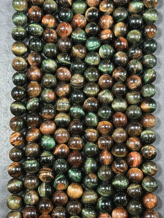 Natural Multicolor Tiger Eye Gemstone 8mm 10mm Round Beads, Gorgeous Multicolor Brown Navy Turquoise Color Tiger Eye Gemstone Beads 15.5"
