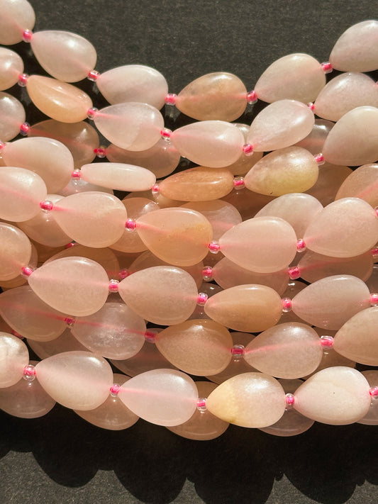 Natural Cherry Blossom Flower Agate Gemstone Bead 18x13mm Teardrop Shape, Beautiful Natural Pink Beige Color Flower Agate Stone Beads 15.5"