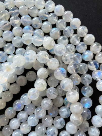 AAA Natural Blue Flash Moonstone 4mm 6mm 8mm 10mm 12mm Round Beads. Gorgeous Natural White Moonstone Color with Blue Flash.