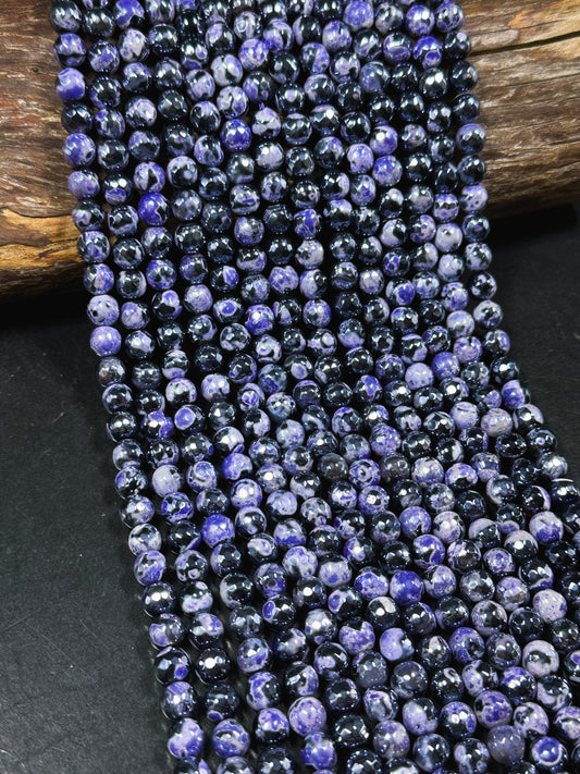 Mystic Natural Tibetan Agate Gemstone Bead Faceted 8mm 10mm Round Beads, Beautiful Mystic Purple Black Agate Stone Beads, Full Strand 15.5"