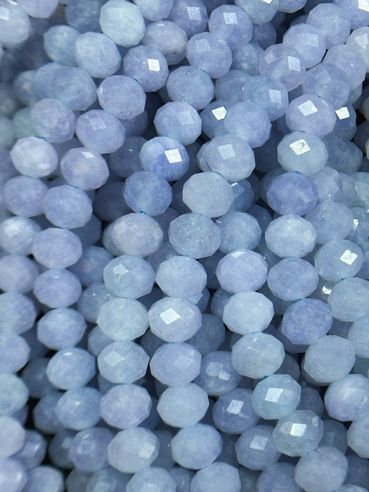 Natural Blue Lace Agate Gemstone Bead Faceted 8x6mm Rondelle Shape Bead, Beautiful Natural Blue Color Chalcedony Bead, Great Quality 15.5"