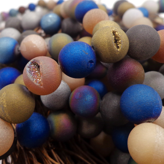 NATURAL Gemstone Druzy Agate Beads, Multi-Color Smooth Round, Matte Finish 6mm 8mm 10mm 12mm Druzy Agate Beads
