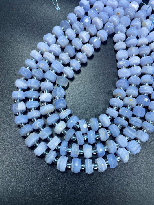 AAA Natural Blue Lace Agate Gemstone Bead Faceted 8mm 10mm Freeform Rondelle Shape, Natural Light Blue Color Agate Gemstone Bead