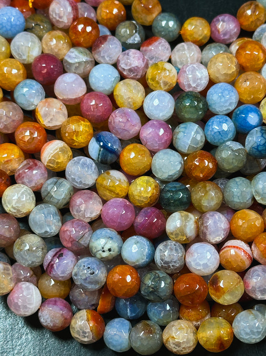 Natural Dragon Vein Agate Gemstone Bead Faceted 10mm Round Bead, Gorgeous Multicolor Dragon Vein Agate Bead, Great Quality Full Strand 15.5"