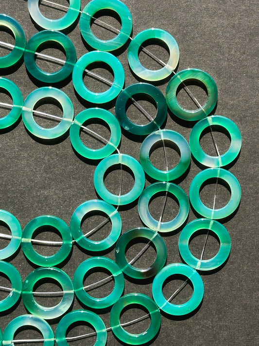 Natural Green Agate Gemstone Bead 26mm Round Circle Donut Beads, Gorgeous Natural Green Clear Color Agate Gemstone Bead, Full Strand 15.5"