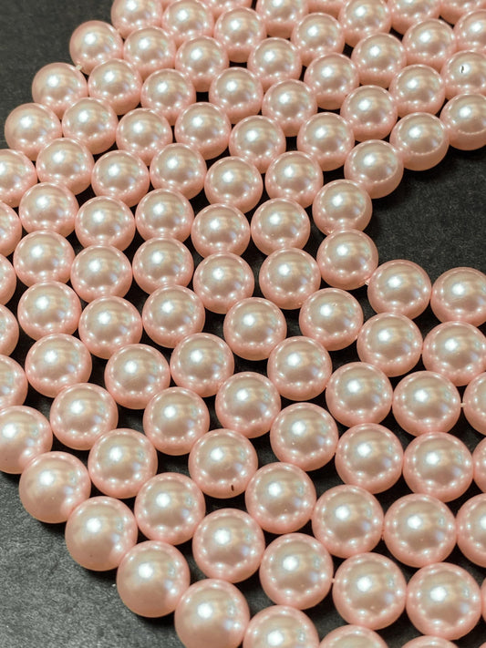 Chinese Swarovski Pearl Crystal Beads 8mm 10mm 12mm Smooth Round Bead, Beautiful Rose Pink Swarovski Crystal Pearl 15.5"