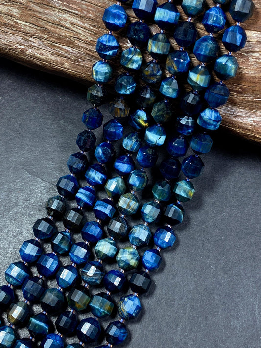 Natural blue tiger eye stone bead. Faceted 8mm diamond shape bead. Gorgeous natural navy blue tiger eye gemstone bead. Full strand 15.5