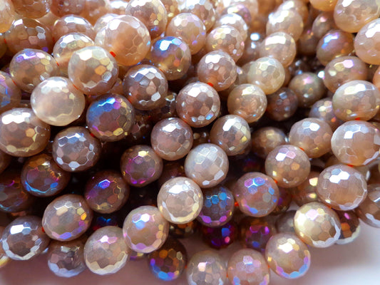 AAA Mystic Moonstone Gemstone Beads, 6mm, 8mm, 10mm, Faceted Round Beads, Beautiful Gray Brown Beads, Great Quality Beads! Full Length 15"