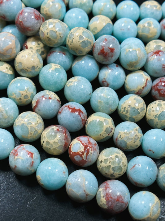 Natural Sea Sediment Jasper Gemstone Bead 6mm 8mm 10mm Round Beads, Beautiful Blue Red Beige Color Imperial Jasper Beads Full Strand 15.5"