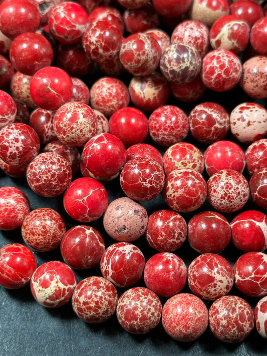 Natural Sea Sediment Jasper Gemstone Bead 6mm 8mm 10mm Round Beads, Beautiful Red Beige Color Imperial Jasper Beads Full Strand 15.5"