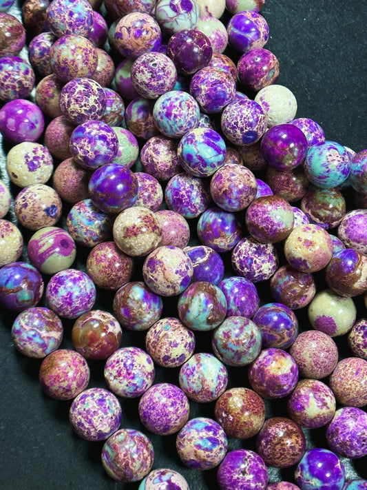 Natural Sea Sediment Jasper Gemstone Bead 6mm 8mm 10mm Round Beads, Beautiful Purple Blue Beige Color Imperial Jasper Bead Full Strand 15.5"
