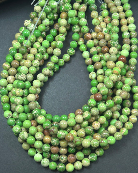 Natural Sea Sediment Jasper Gemstone Bead 6mm 8mm 10mm Round Beads, Beautiful Green Beige Color Imperial Jasper Beads Full Strand 15.5"