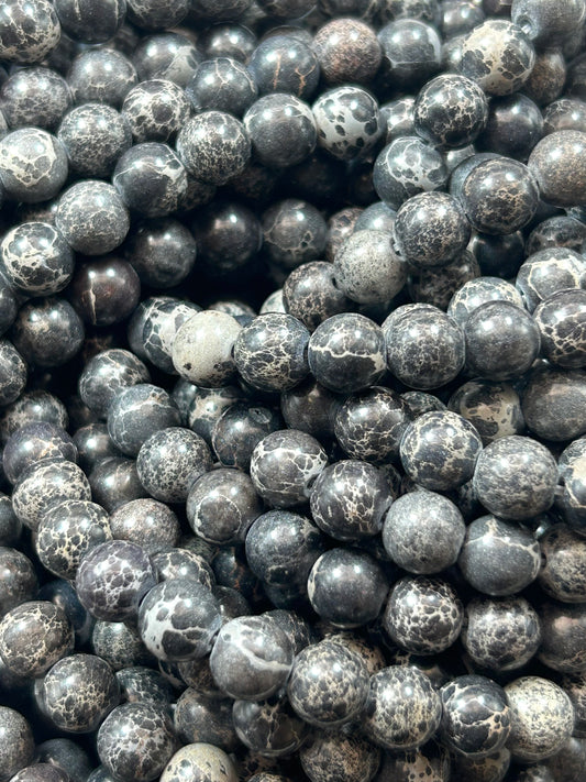 Natural Sea Sediment Jasper Gemstone Bead 6mm 8mm Round Beads Beautiful Black with hits of Brown Color Imperial Jasper Beads Full Strand15.5