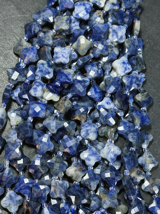 Natural Sodalite Gemstone Bead Faceted 12mm Clover Flower Shape Bead, Gorgeous Natural Blue White Color Sodalite Gemstone Beads 15.5" Strand