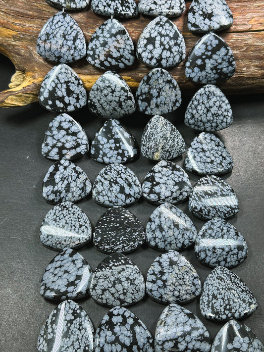 Natural Snowflake Obsidian Gemstone Bead 35mm Curved Triangle Shape, Natural Black Gray Color Snowflake Obsidian Beads, Full Strand 15.5"