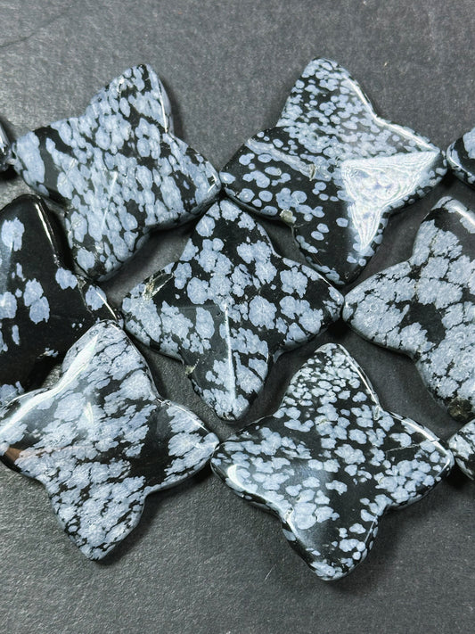Natural Snowflake Obsidian Gemstone Bead 35mm Star Shape Bead, Natural Black Gray Color Snowflake Obsidian Beads, Full Strand 15.5"