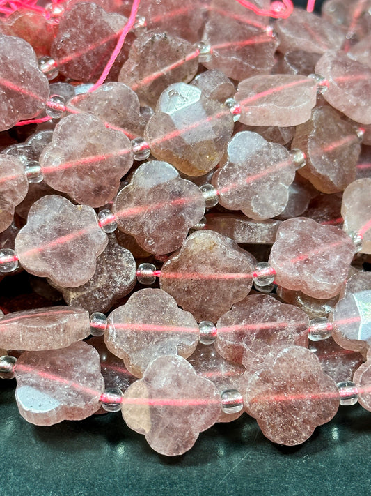 NATURAL Strawberry Quartz Gemstone Bead Faceted 16mm Clover Flower Shape Bead, Beautiful Red Pink Color Gemstone Beads Full Strand 15.5"
