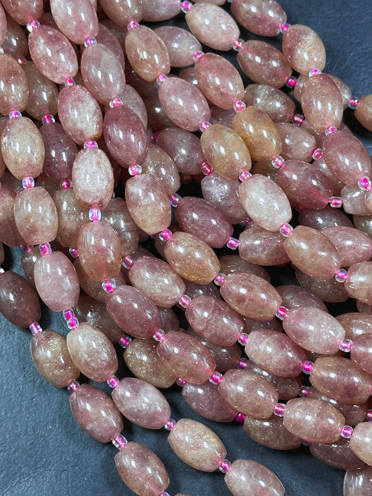 Natural Strawberry Quartz Gemstone Bead 15x10mm Tube Shape, Beautiful Pink Red Color Great Quality Strawberry Quartz Full Strand 15.5"