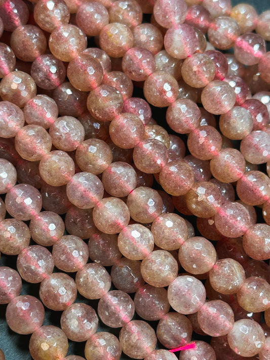 Natural Strawberry Quartz Gemstone Bead Faceted 6mm 8mm 10mm 12mm Round Beads, Beautiful Pink Red Strawberry Quartz Bead Full Strand 15.5"