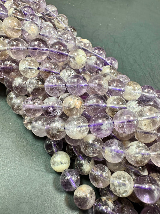 Natural Super 7 Gemstone Bead 6mm 8mm 10mm Round Bead, Beautiful Purple Clear Color Super 7 Gemstone Bead Full Strand 15.5"