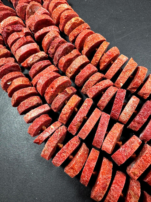 Natural sponge coral gemstone bead. Roundell shape. beautiful natural red orange color . not treated . excellent quality. full strand 15.5”