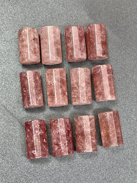 Natural Strawberry Quartz Gemstone Bead Faceted 17x9mm Tube Shape, Beautiful Red-Pink Color Strawberry Quartz LOOSE Beads