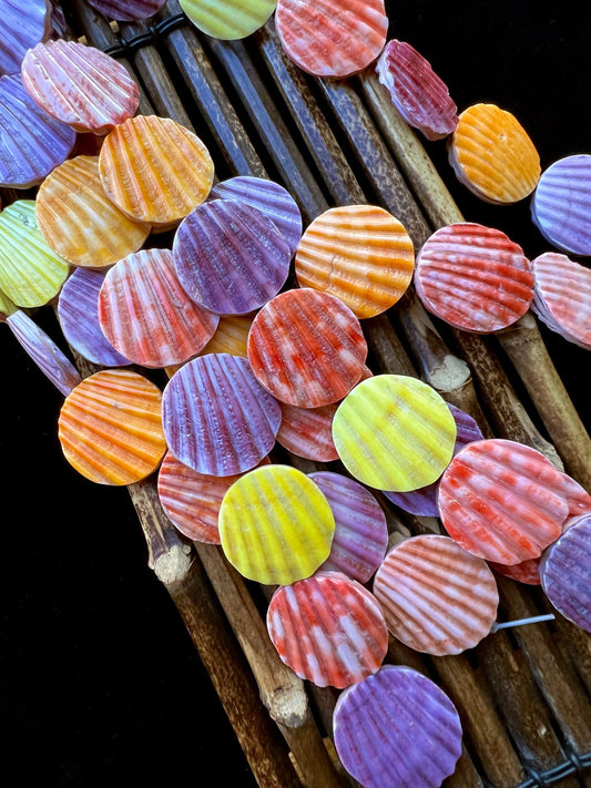 Natural Spiny Oyster Shell Bead Ribbed Coin Shape 20mm 25mm 30mm Gorgeous Colorful Beads Half Strand 7.5"