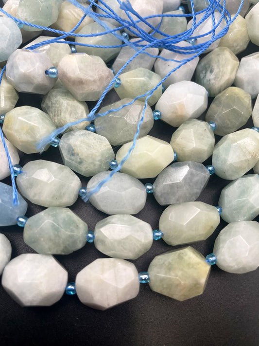 AAA Natural aquamarine gemstone bead. Faceted 12x16mm oval nugget shape. Gorgeous natural aqua blue color gemstone bead. High quality bead!