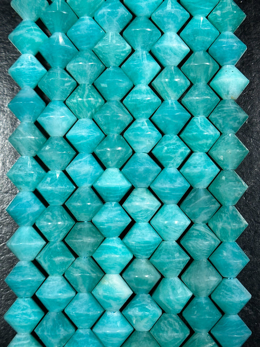 Natural Amazonite Gemstone Bead Faceted 8mm Bicone Diamond Shape Bead, Beautiful Natural Blue-Green Color Amazonite Beads, Full Strand 15.5"