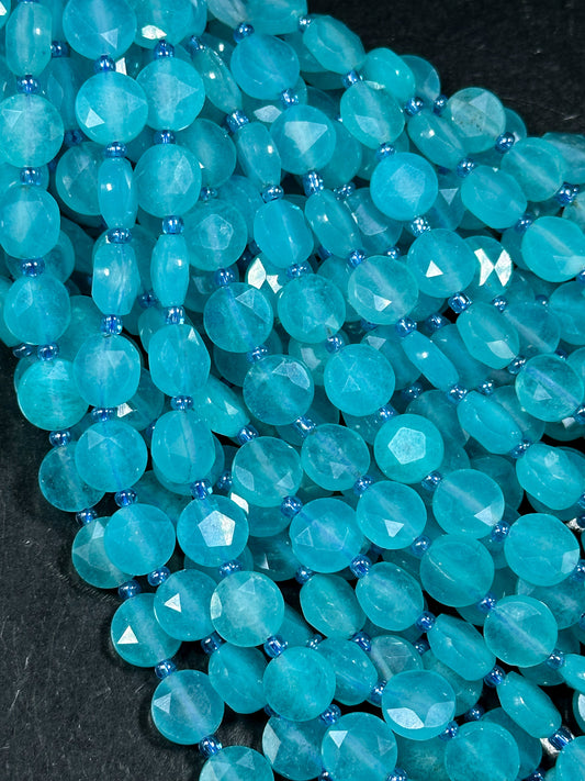 Natural Amazonite Gemstone Bead Faceted 10mm Coin Shape Bead, Beautiful Natural Blue Green Color Amazonite Beads, Great Quality 15.5" Strand