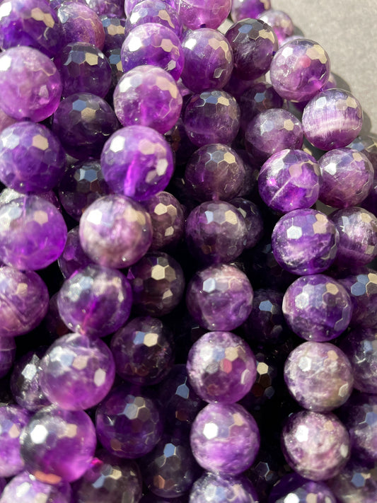 AAA Natural Amethyst Gemstone Bead Faceted 6mm 8mm 10mm 12mm Round Bead, Gorgeous Natural Purple Color Amethyst Beads 15.5"