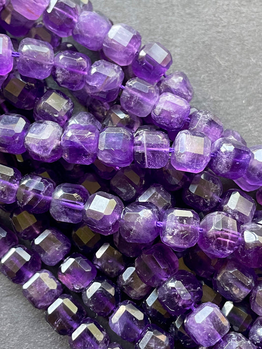 AAA Natural Amethyst Gemstone Bead 6mm 8mm Cube Shape, Beautiful Natural Purple Color Amethyst Gemstone Bead 15.5"