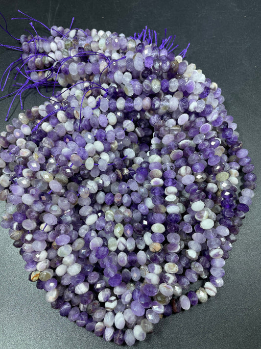 AAA Natural Flower Amethyst Gemstone Bead Faceted 8x5mm 9x6mm Rondelle Shape, Beautiful Natural Purple Amethyst Gemstone Bead