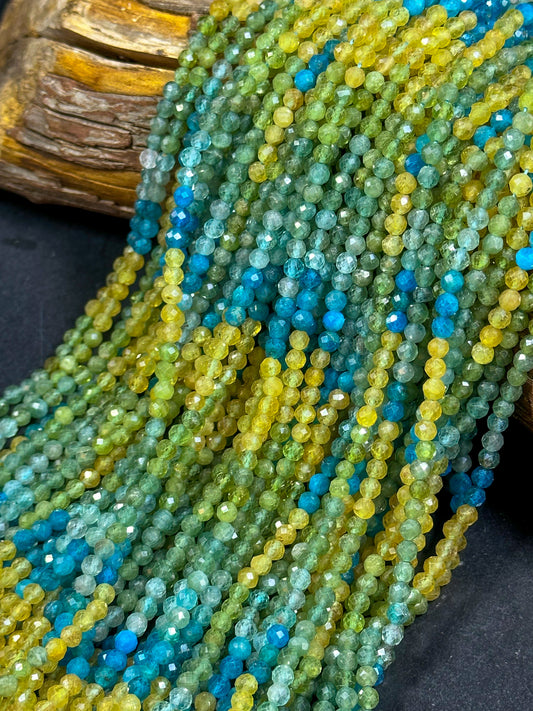 NATURAL Multicolor Apatite Gemstone Bead Faceted 3mm 4mm Round Beads, Beautiful Yellow Blue Green Color Apatite Beads Full Strand 15.5"