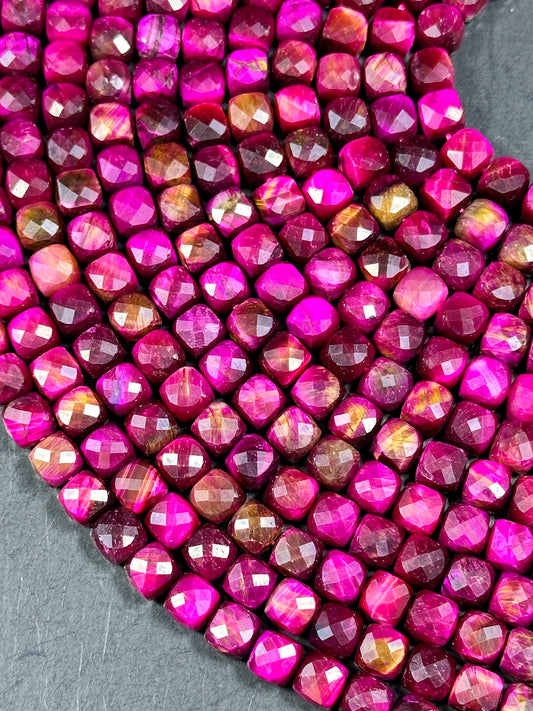 NATURAL Pink Tiger Eye Gemstone Bead, Faceted 5mm 7mm Cube Shape Beads. Gorgeous Pink Fuchsia Color Tiger Eye Gemstone Beads, Full Strand 15.5"