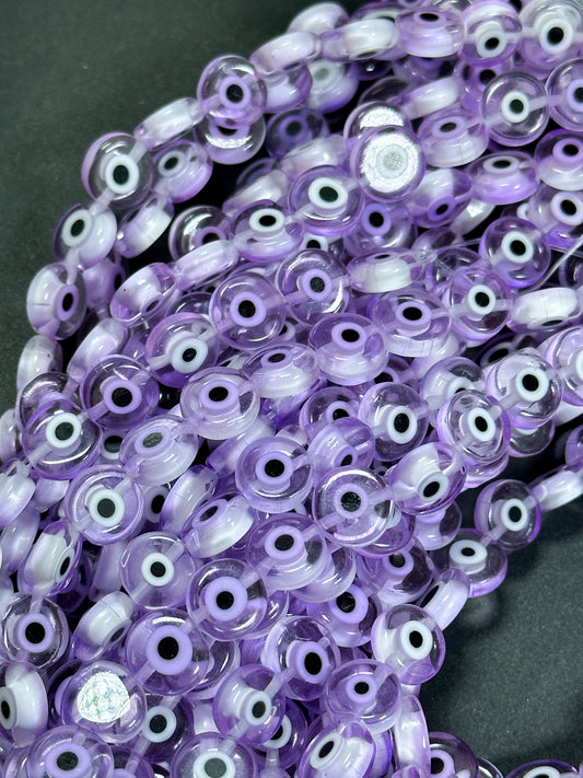 Beautiful Evil Eye Glass Beads 6mm 8mm 10mm Flat Coin Shape, Beautiful Purple Clear Color Evil Eye Glass Beads, Religious Amulet Prayer Beads