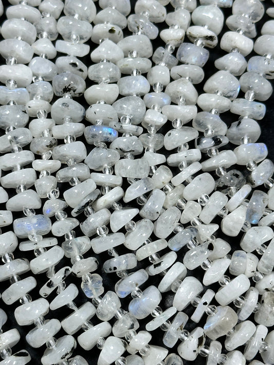 NATURAL Blue Flash Moonstone Gemstone Bead 6-10mm Freeform Rondelle Shape, Beautiful White Color w/ Blue Flash Loose Beads Full strand 15.5"