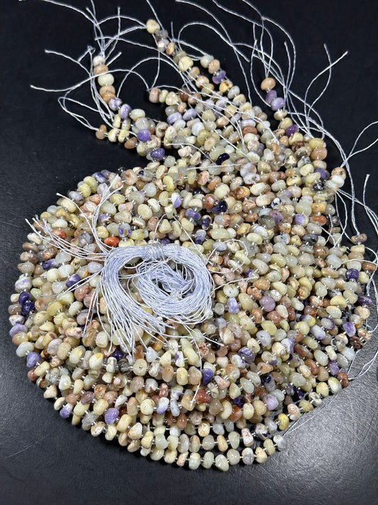 NATURAL Mexican Morado Purple Opal Gemstone Beads 7-9mm Freeform Rondelle Shape, Beautiful Purple Light Yellow Color 15.5" strand