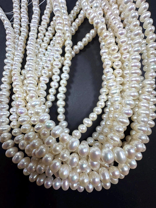 100% Natural fresh water pearls beads. Natural white color round beads . Excellent quality. Full strand.